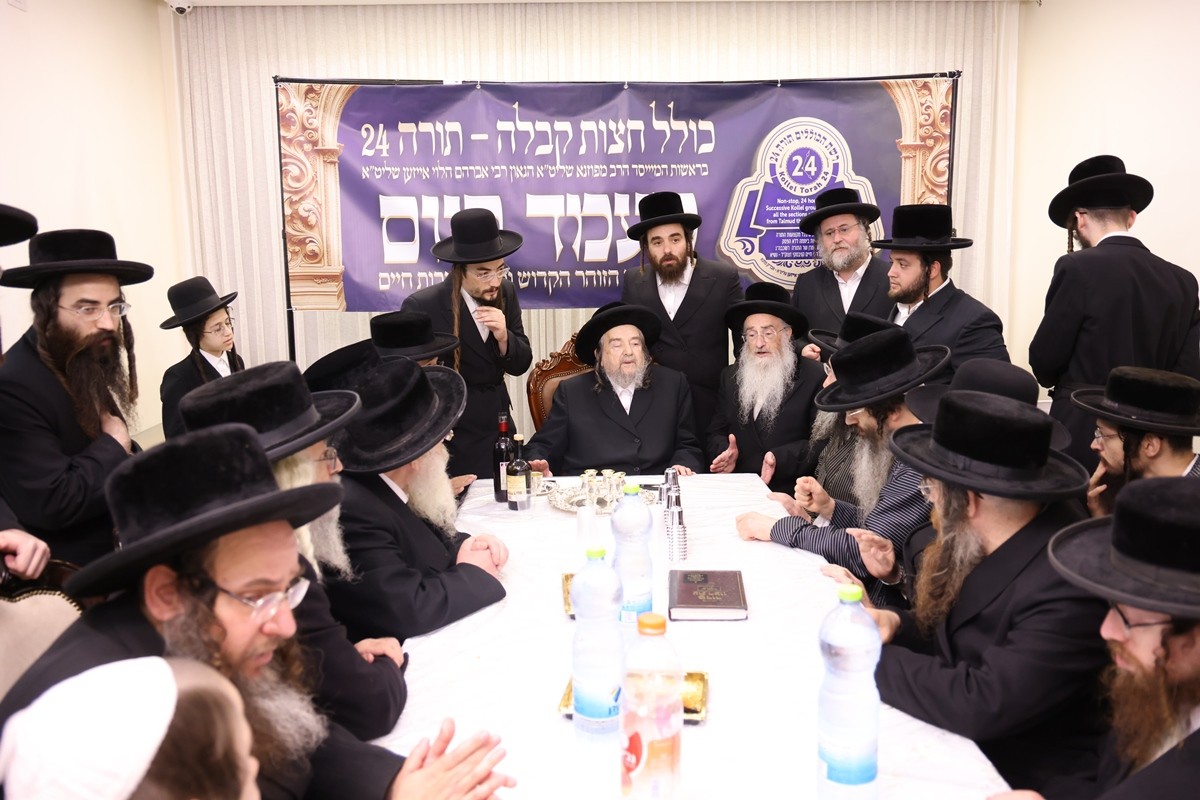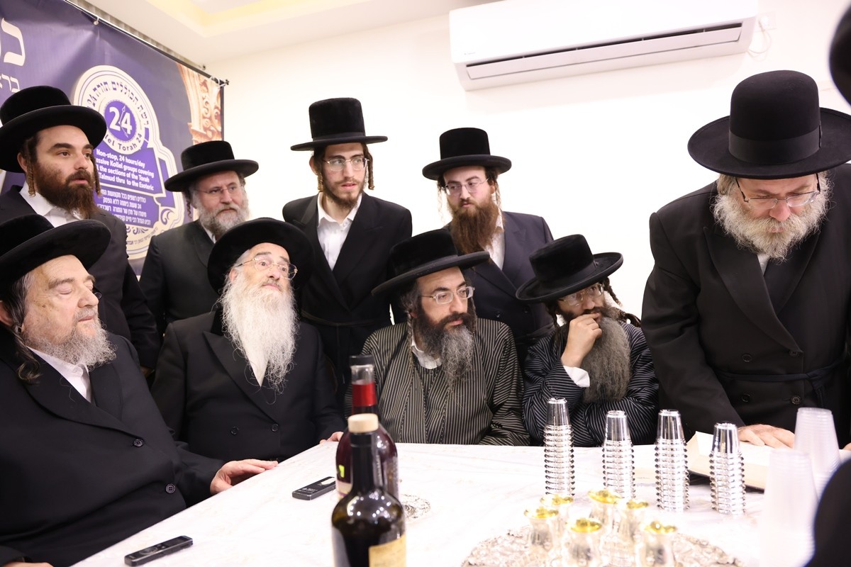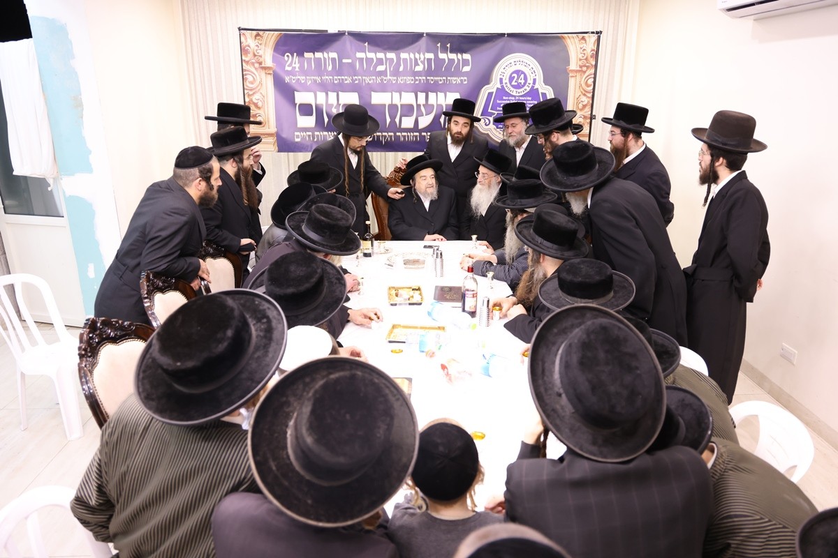 A unique siyum took place recently at the Kolel Kabbolah Chatzos (the Midnight Kolel) of Torah-24 in Yerushalayim. Every night, talmidei chachomim geonim and known mekubalim gather there at midnight to first recite Tikkun Chatzos and then, for hours, to delve into the Zohar, Otzros Chaim (by Rabbeinu Chaim Vital) and other Kabbalistic works. One of Eleven Kolel Kabbolah Chatzos is one of 11 kollelim under-one-roof at Torah-24. These kollelim offer different learning shifts in all aspects of Torah b’iyun – every day, 24 hours per day. This follows the learning tradition of the Ramchal, Ohr Hachaim Hakadosh and Reb Chaim Volozhener – to ensure that the sound of Torah learning does not cease even for a minute.