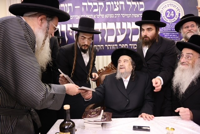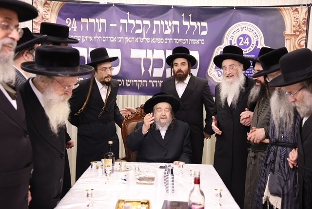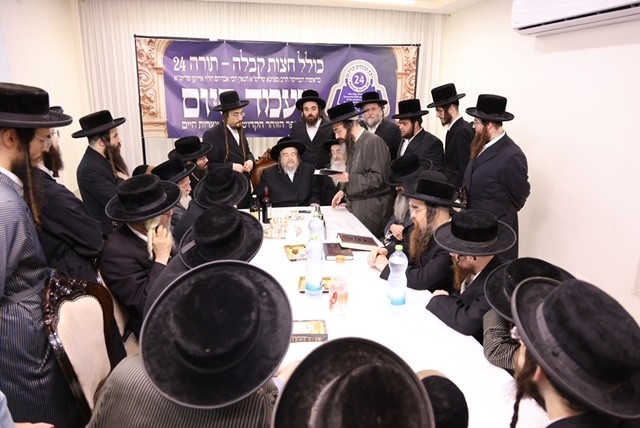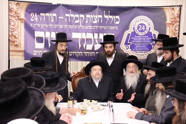 Each kollel has regular oral farhers and written tests. The Siyum The gathering celebrated the diligent completion, by the rabbis of the Torah-24 midnight Kolel Kabbolah Chatzos, of the study of the entire Zohar, its commentaries and the Otzros Chaim. The event also acknowledged the dedication and the dissemination of Torah study at Torah-24, which encompasses both nigleh and nistar.