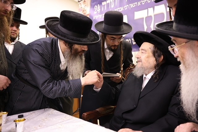 The gathering took place in the home of the famed, leading kabbalist, Maran Hatzadik Harav Yaakov Meir Shechter, shlit”a, in Yerushalayim. Rav Schechter praised the founder of Torah-24, the Pozna Rov, for his notable vision and expansion of Torah study, and for his inclusion of true Kabbalah study method, not just for individual learning but in a holy enclave of talmidei chachomim. This would expand its influence across the world, he said, and this Kolel’s growing impact will bring about Redemption as detailed in the Zohar. He also paid tribute to the memory of the Pozna Rov’s grandfather, Harav Asher Zelig Margolius, a great Yerushalmi kabbalist who Rav Shechter knew personally. He also spoke extensively about Kabbalah study, citing insights from great mekubolim he had known.