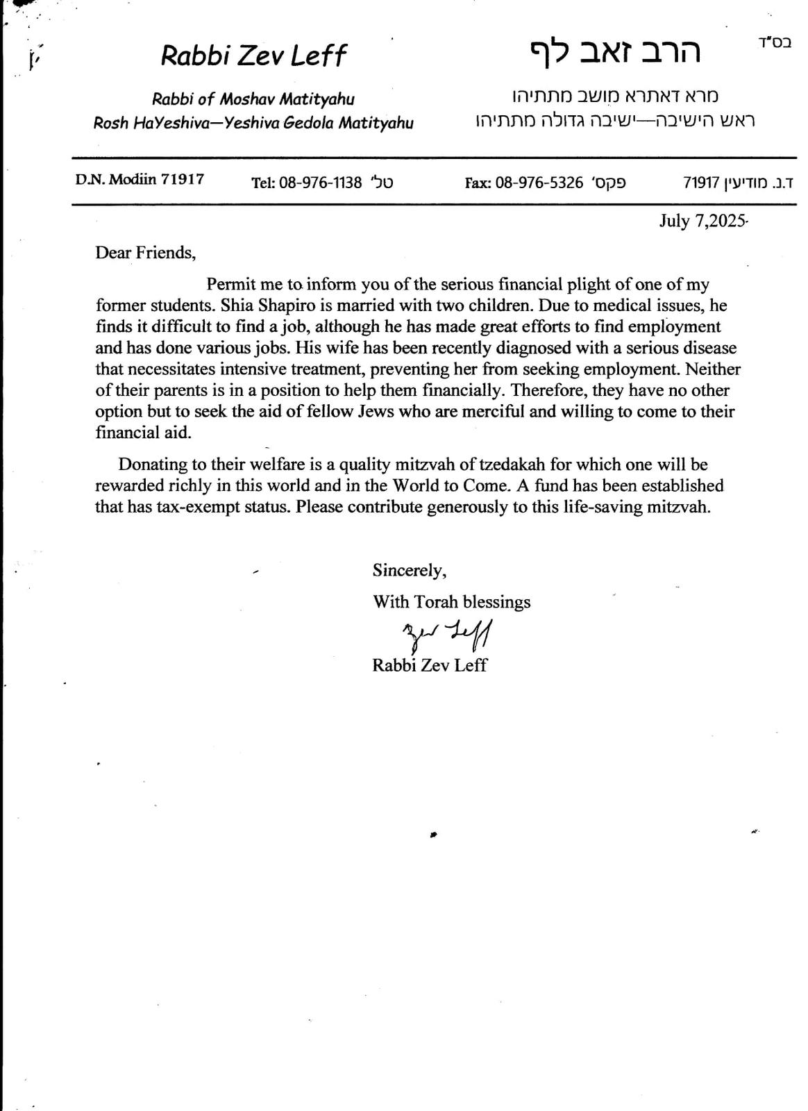 Thank you. May you all be blessed with Parnassah and health. Please daven for a refuah Shelaima for Sarah chana bas anat.