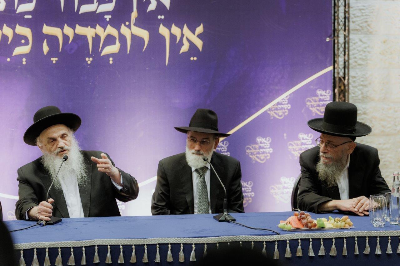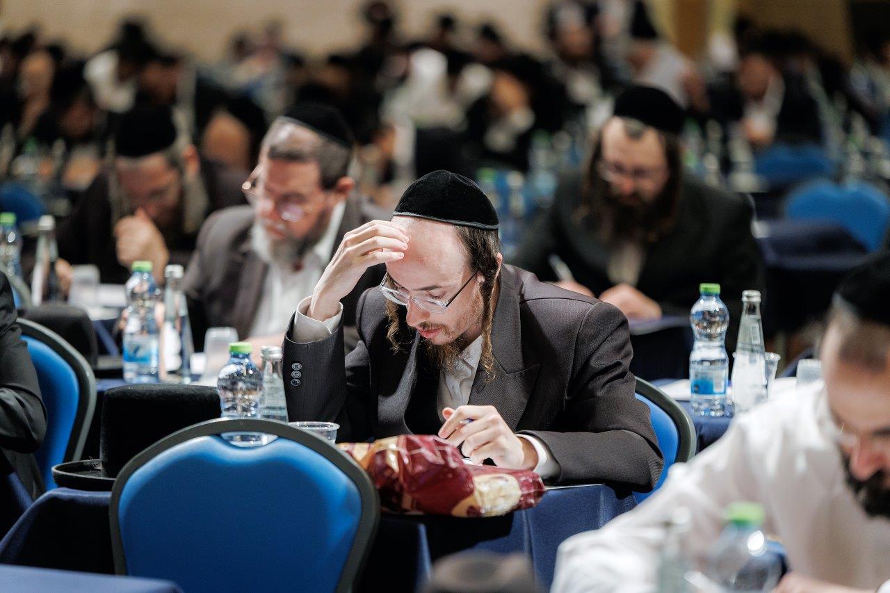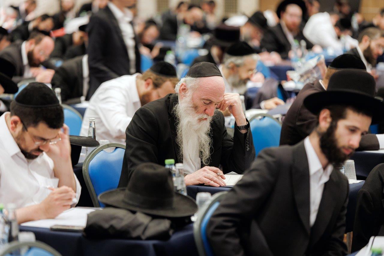 Another remarkable highlight of the event was the public test and speaking in learning with the Gedolim, Rav Bunim Schreiber, Rav Chaim Feinstein, Rav Chaim Mordechai Ausband, and Rav Dovid Hofstedter. A group of more than one-hundred-and-fifty test takers went into a sperate room where the Gedolim engaged with them in something that can only be described as a lightning speed journey through Shas and Shulchan Aruch that was almost done in code word fashion.