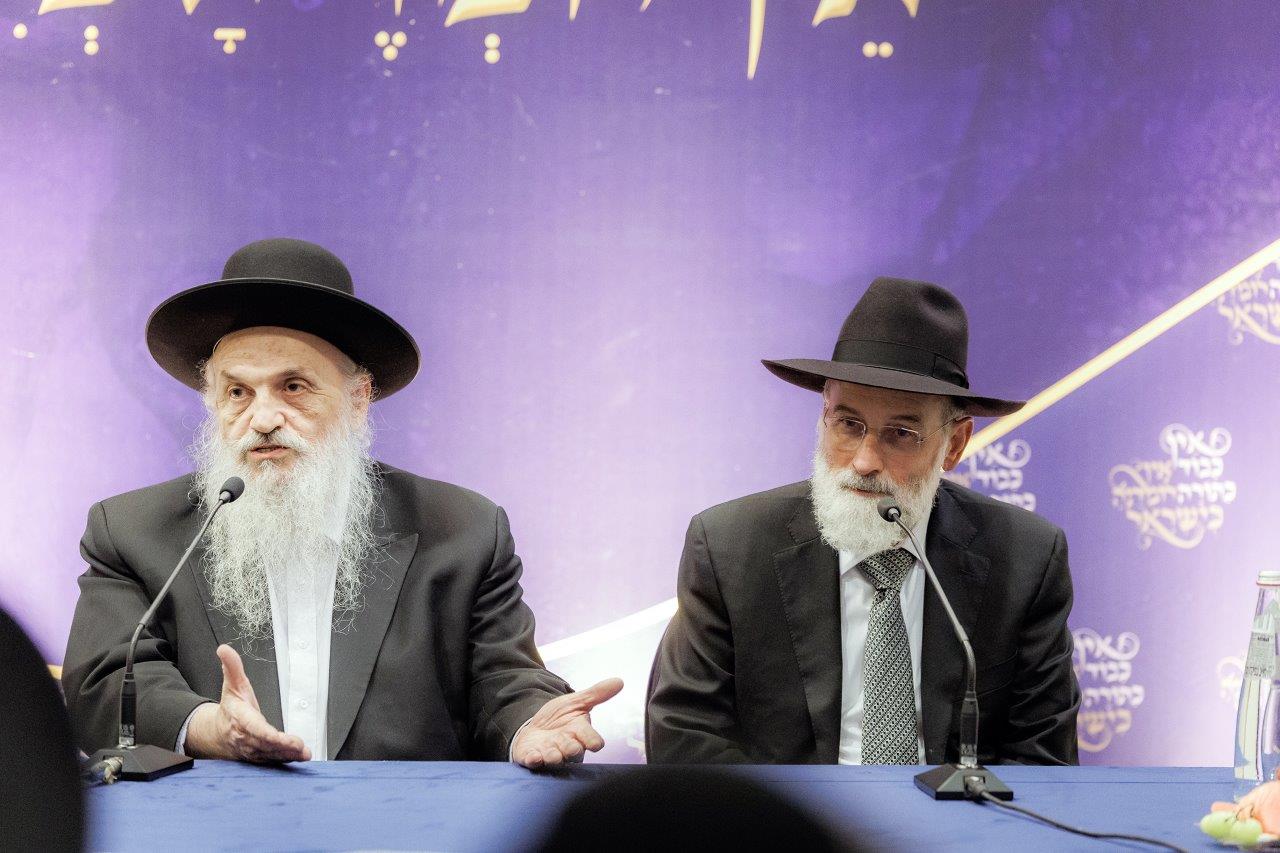 The Gedolim didn’t want to make an extended interruption during the long test but three of them, Rav Dovid Cohen, Rav Chaim Feinstein and Rav Dovid Hofstedter each delivered short words of bracha.
