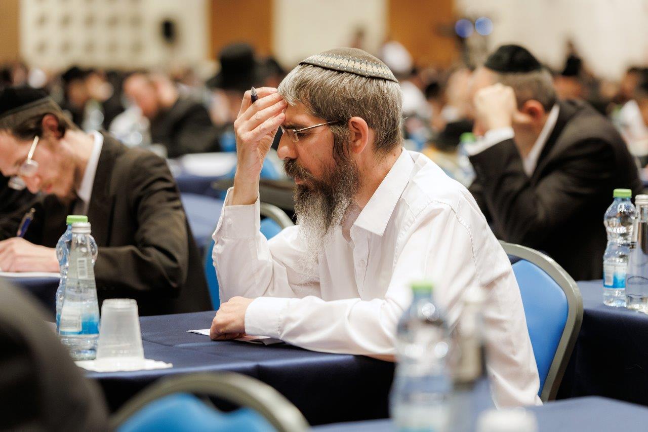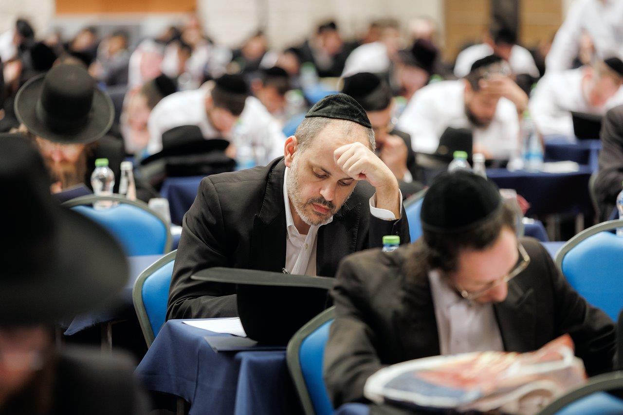 If you wanted an inkling of what it means to have 1,500 walking, talking Shas and Shulchan Aruch yidden in one room, all you had to do was come to the Binyanei Haumah Hall the Monday after Yom Tov where you were able to watch the members of Dirshu’s Kinyan Shas Gemara program and Kinyan Halacha program taking the grand cumulative tests on Shas and Shulchan Aruch!
