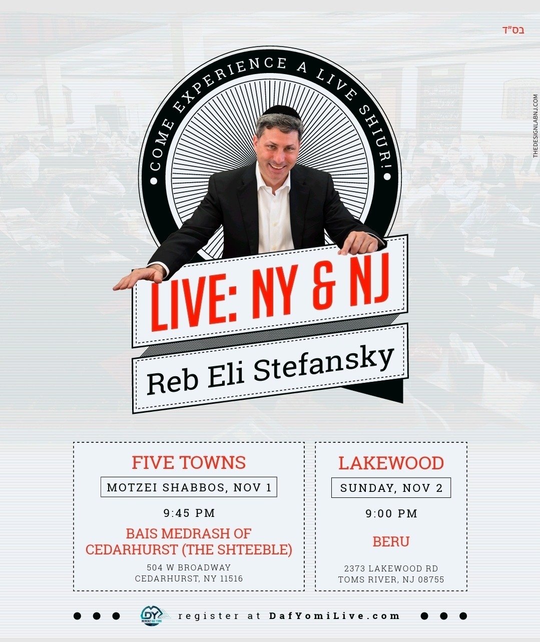 COME EXPERIENCE A LIVE SHIUR WITH REB ELI!