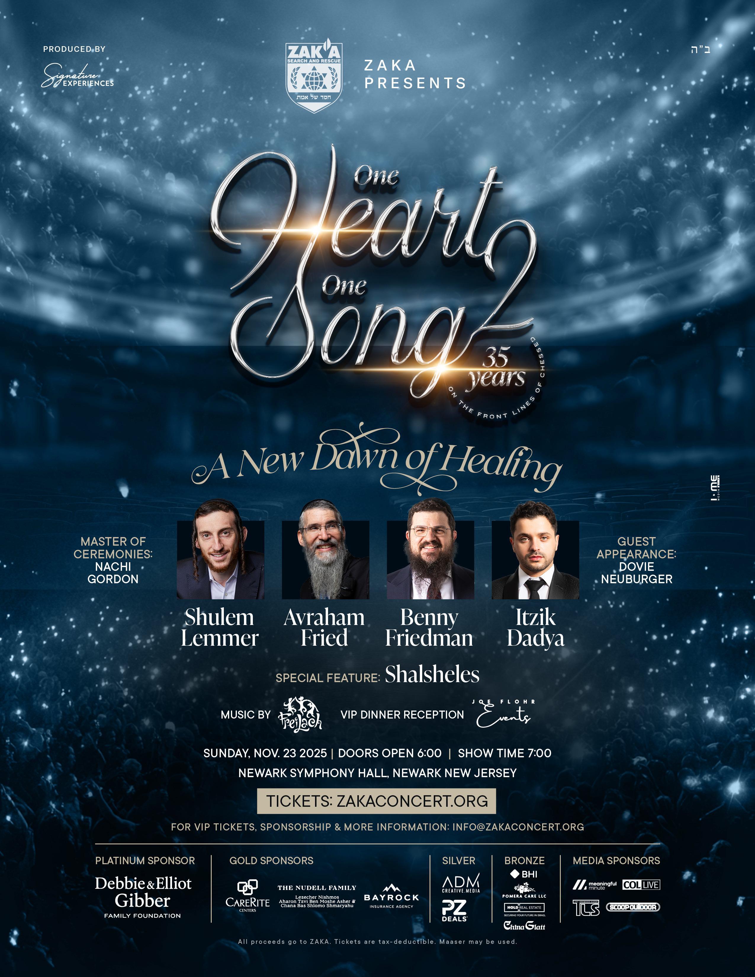 ZAKA Search and Rescue will mark 35 years on the frontlines of Chessed with a benefit concert on Sunday, November 23, 2025, at the Newark Symphony Hall.