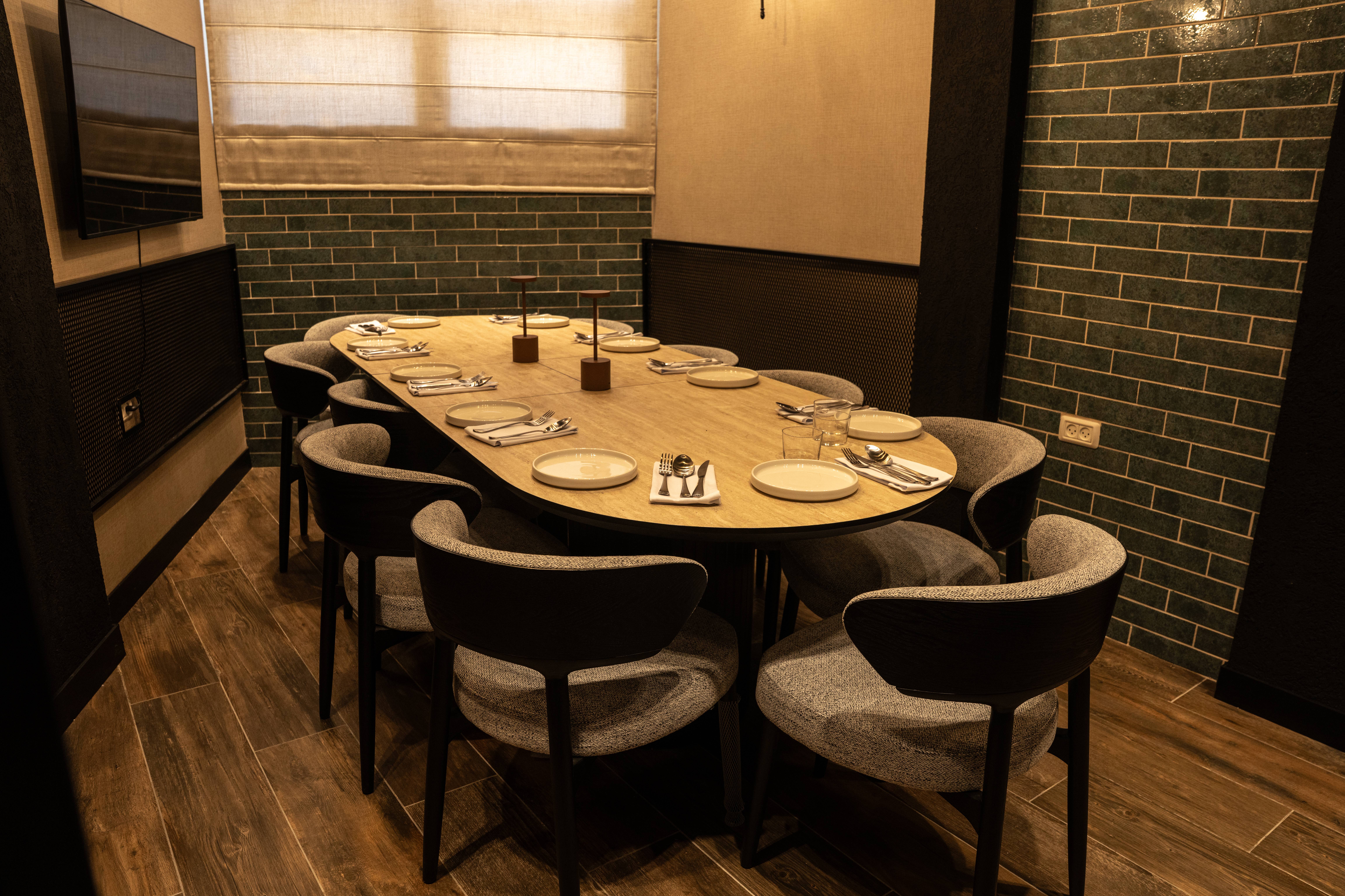 The restaurant’s design draws from Lifta’s spirit: deep green tiles, an ancient olive tree at the center, and soft lighting that gives a mysterious Jerusalem ambiance.