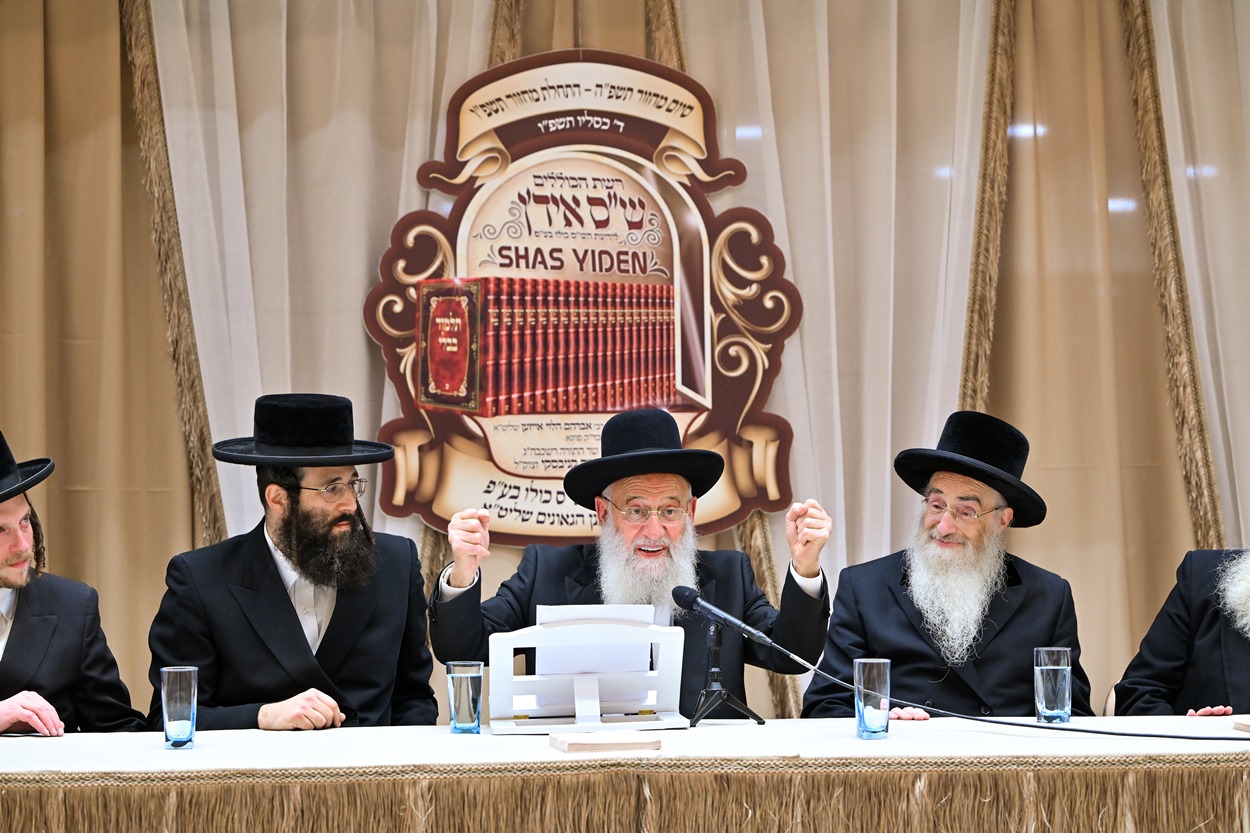 Turning to the patrons of “Kollel Shas Yidden,” Rav Meilech said: “I hope you won’t be offended when I tell you that it isn’t you who support these Gaonim Shas Yidden; it is they who support you!” He got no argument from this part of the room, as the joyful Torah supporters nodded in agreement—expressing their own similar feelings that they receive more than they give to these heroes of Torah.