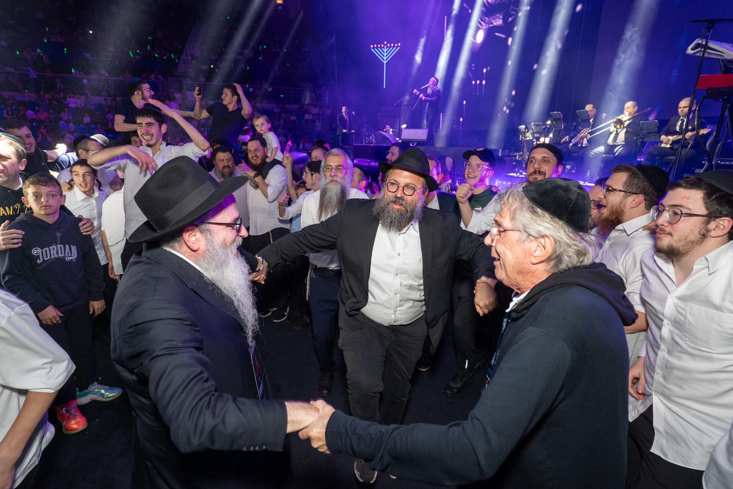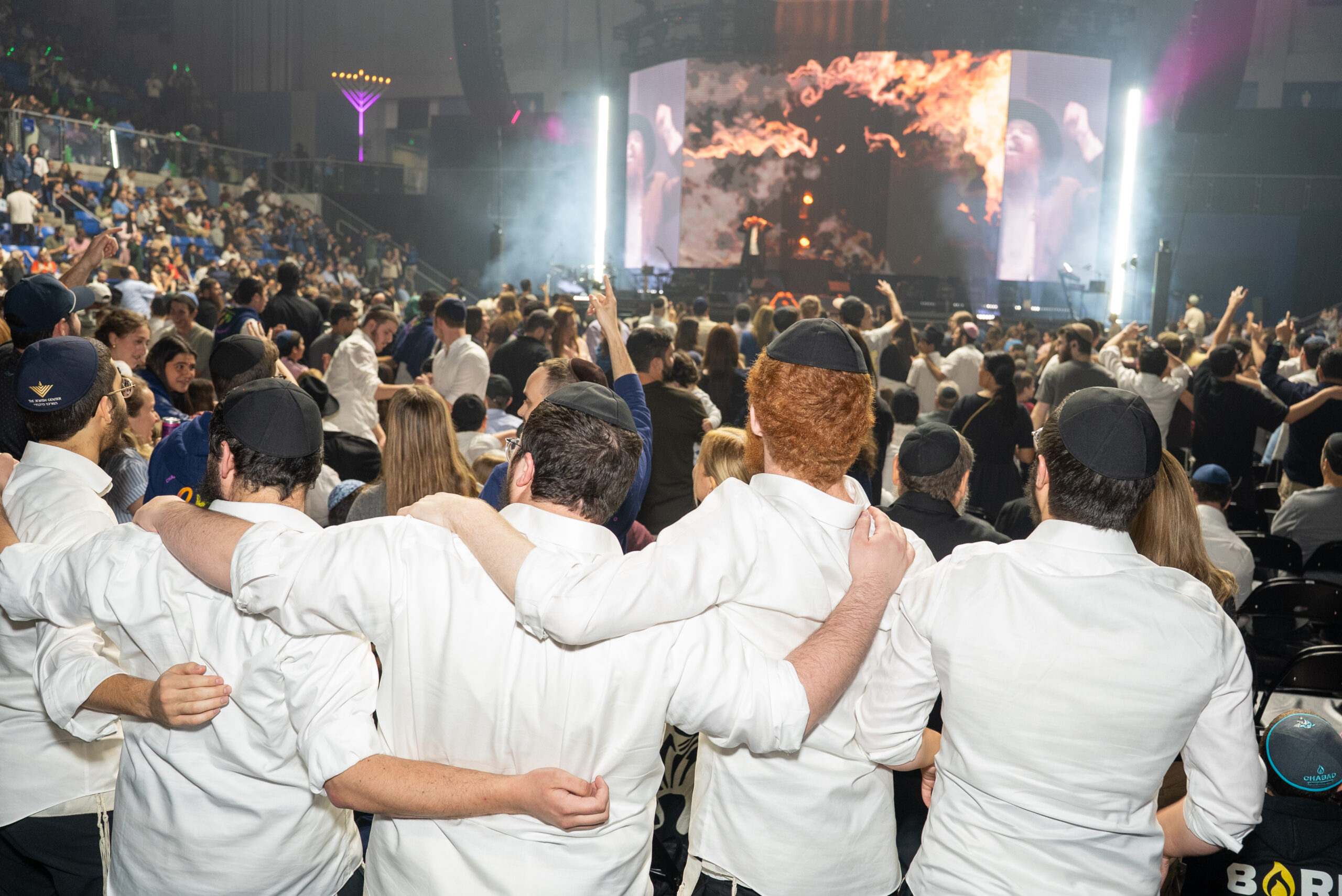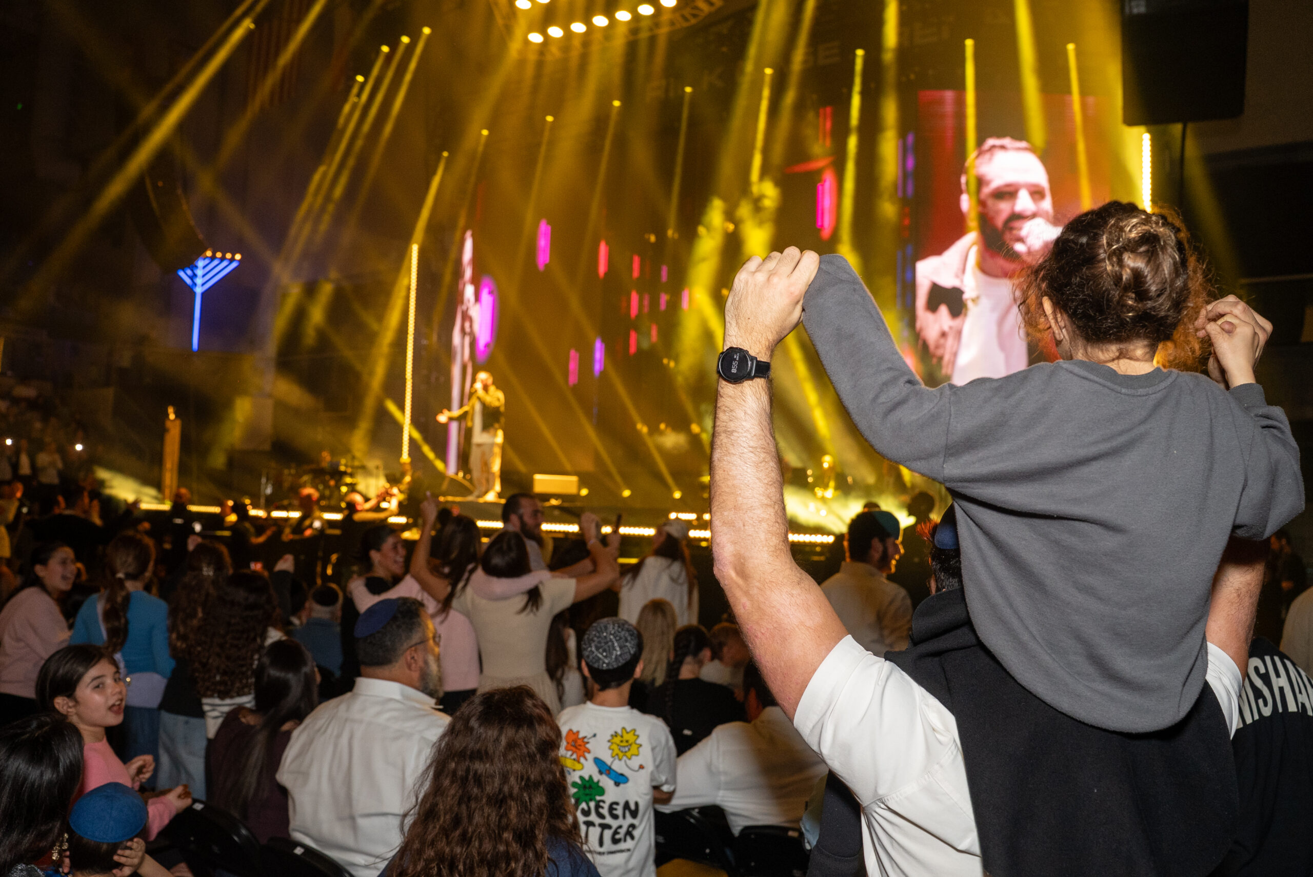 What followed was a sweeping musical journey featuring Avraham Fried, Zusha, Joey Newcomb, 8th Day, and the Mendy Hershkowitz Band. Their performances flowed seamlessly into one continuous celebration. Song after song, under the musical direction of Mendy Hershkowitz and Yuval Stupel, the arena was filled with voices lifted in unison, spontaneous dancing, and an energy that never let up, as thousands moved together in rhythm and spirit.