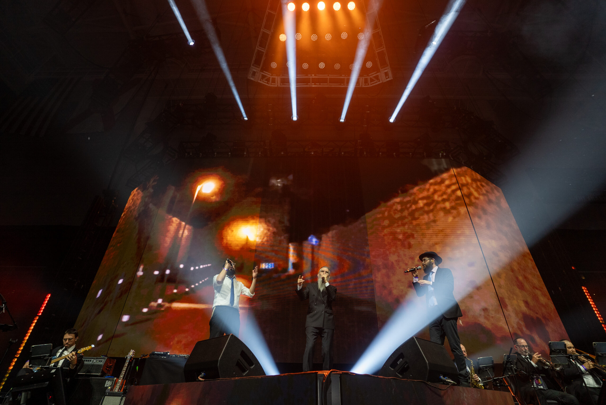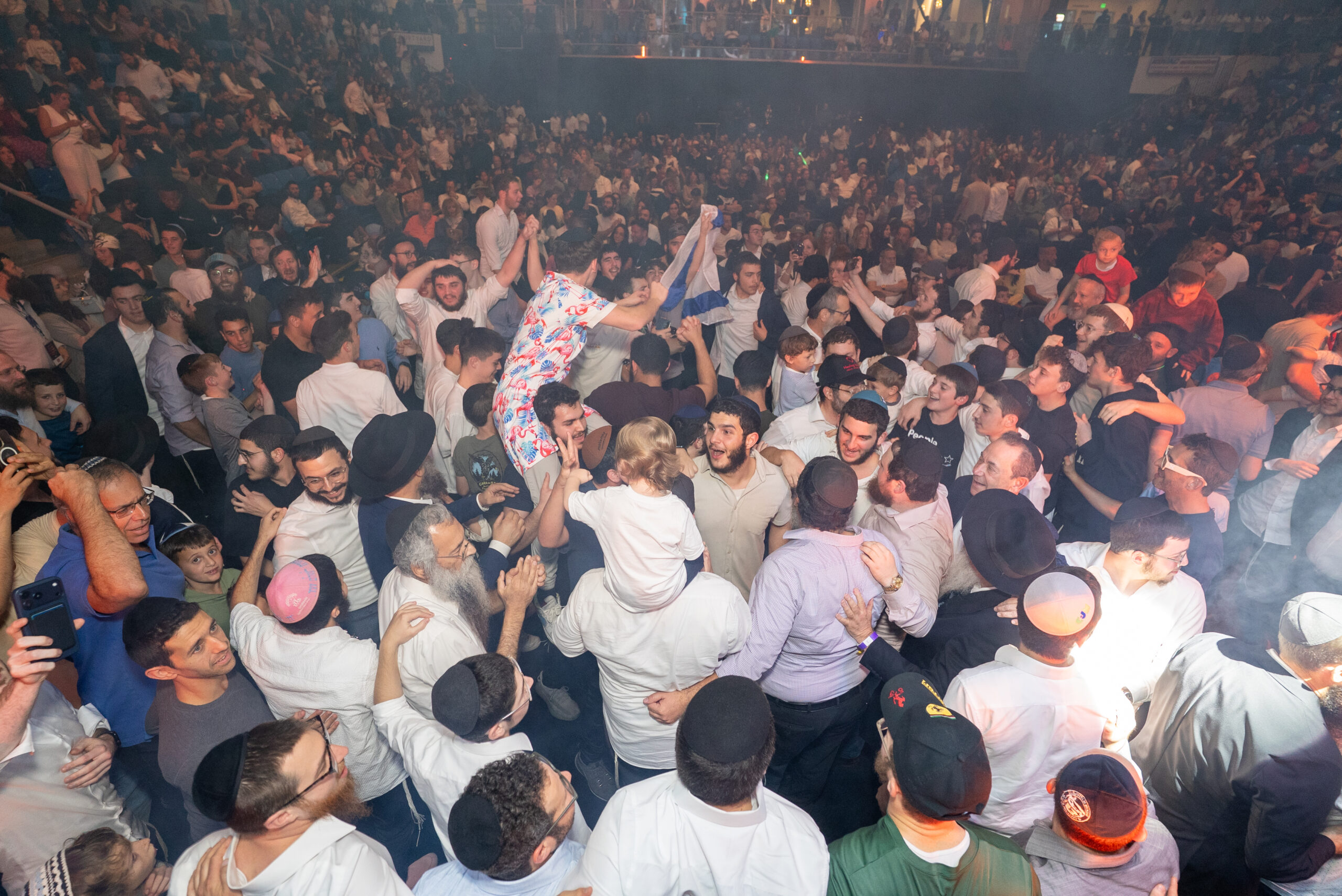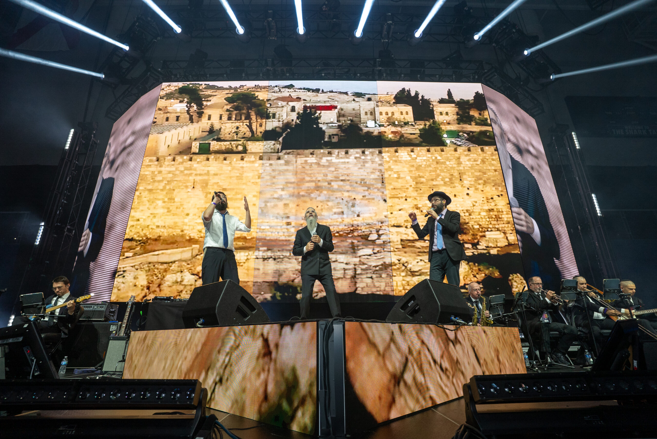 What followed was a sweeping musical journey featuring Avraham Fried, Zusha, Joey Newcomb, 8th Day, and the Mendy Hershkowitz Band. Their performances flowed seamlessly into one continuous celebration. Song after song, under the musical direction of Mendy Hershkowitz and Yuval Stupel, the arena was filled with voices lifted in unison, spontaneous dancing, and an energy that never let up, as thousands moved together in rhythm and spirit.