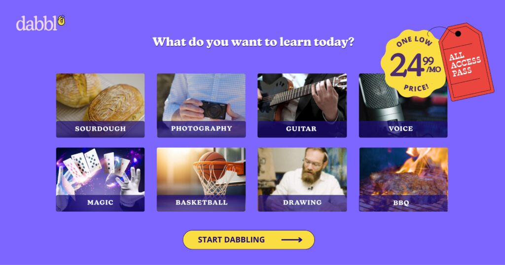 And Dabbl is just getting started. Our behind-the-scenes intel tells us to look out for hair styling, dance, bowling, chess and more… there’s no end to what you can learn!