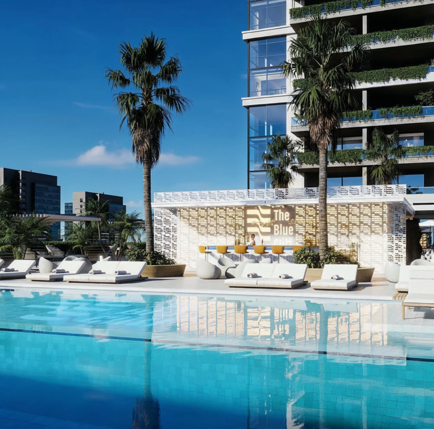 • Private Residents’ Pool — shown prominently in preliminary renderings; final architectural plans will place the pool discreetly within the development, operating with designated hours for men and women