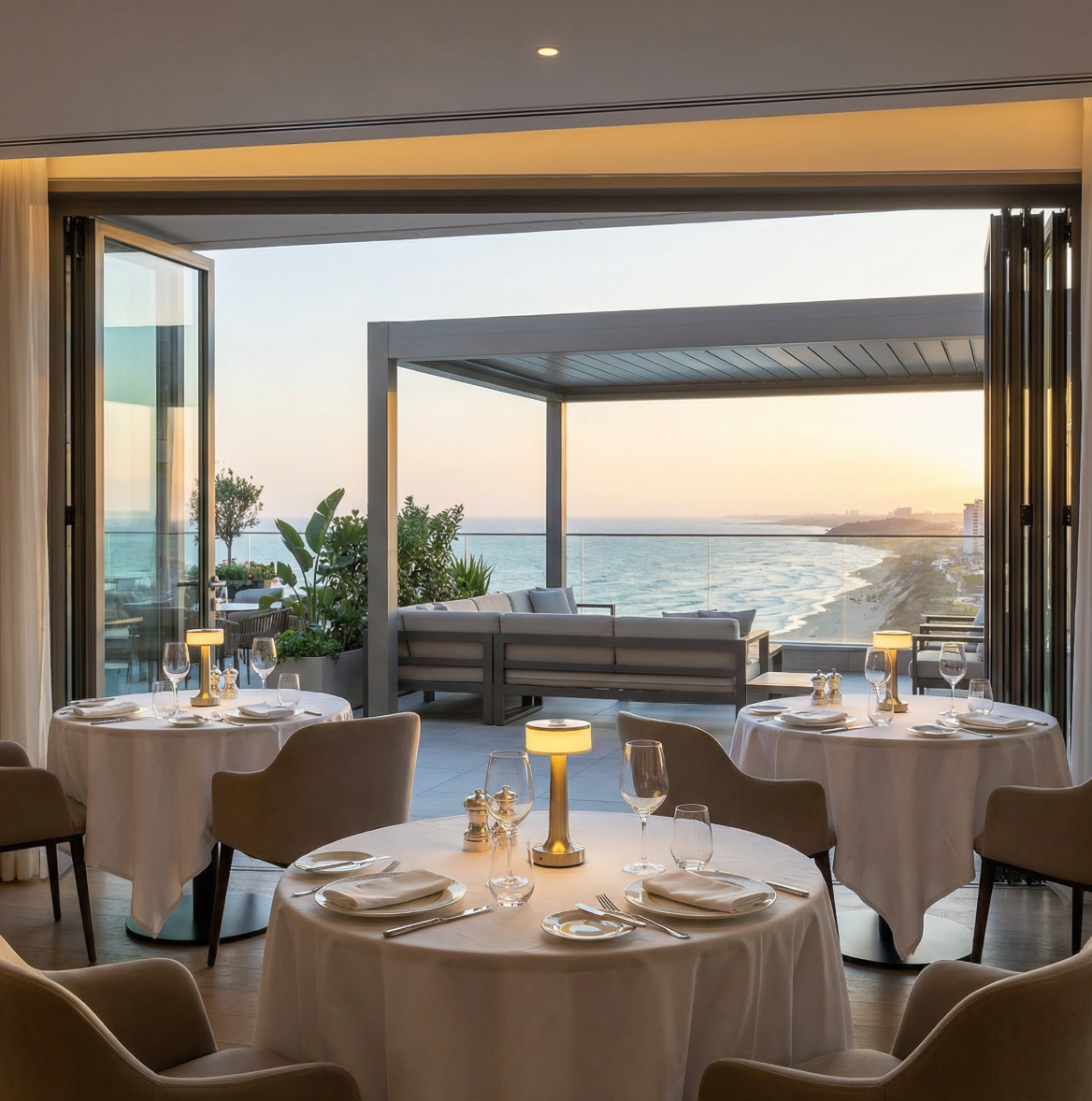 Rising above an on-site luxury hotel, BlueCliff comprises 90 private residences spanning the 9th through 32nd floors. The architectural approach emphasizes light, openness, and connection to the Mediterranean, with glass façades and expansive terraces designed to blur the line between interior living and the outdoors. At the same time, the project maintains a clear residential identity, with separate private entrances for residents and hotel guests.