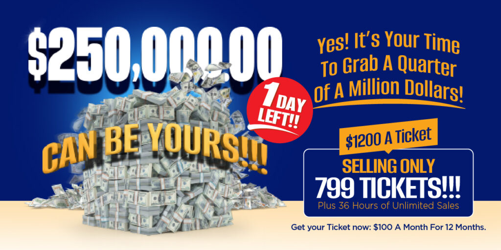 1 Day Left!!! WIN $250,000.00 CASH!! Selling Only 799 Tickets!! (750 Tickets SOLD ALREADY)