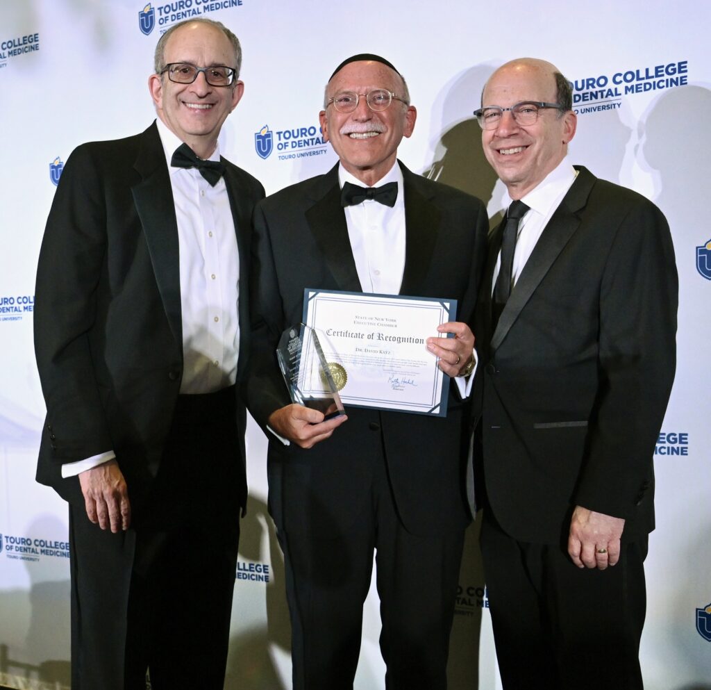 (L to R) Dr. Alan Kadish, Touro University President, Dr. David Katz, Vice Dean of Touro College of Dental Medicine and guest of honor at the gala and Dr. Ronnie Myers, dean of Touro College of Dental Medicine