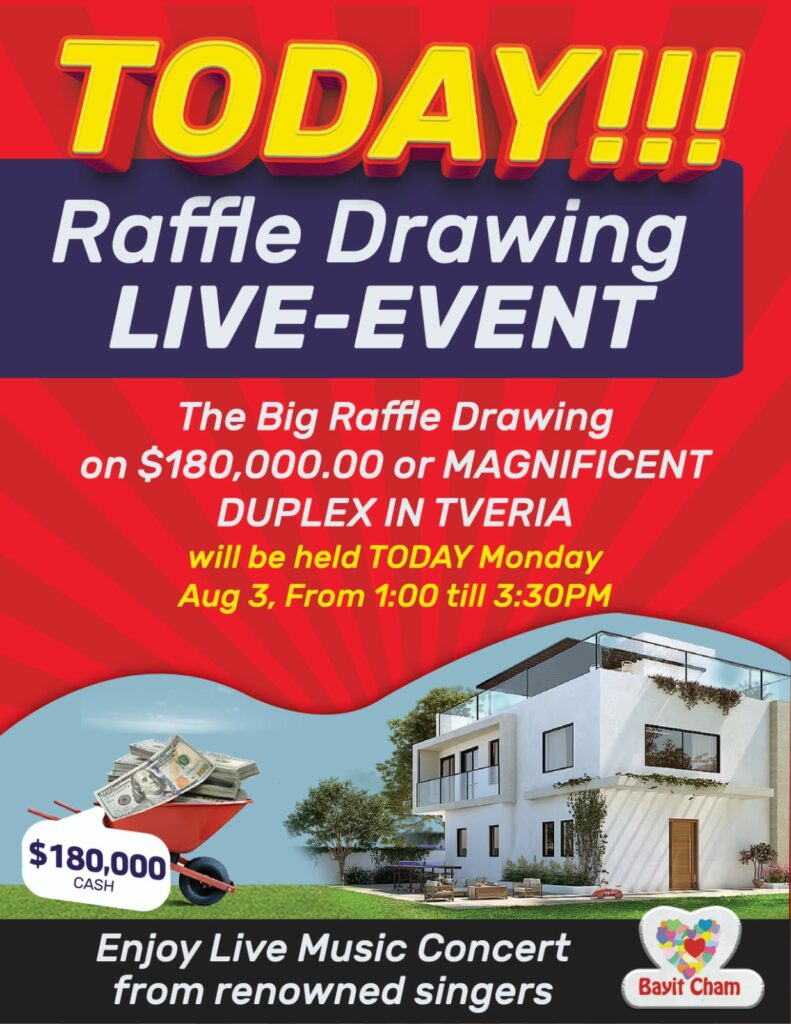 The Big Raffle Drawing on $180,000.00 or MAGNIFICENT DUPLEX IN TVERIA will be held TODAY Monday Aug 3, From 12:00 till 3:00PM!!!