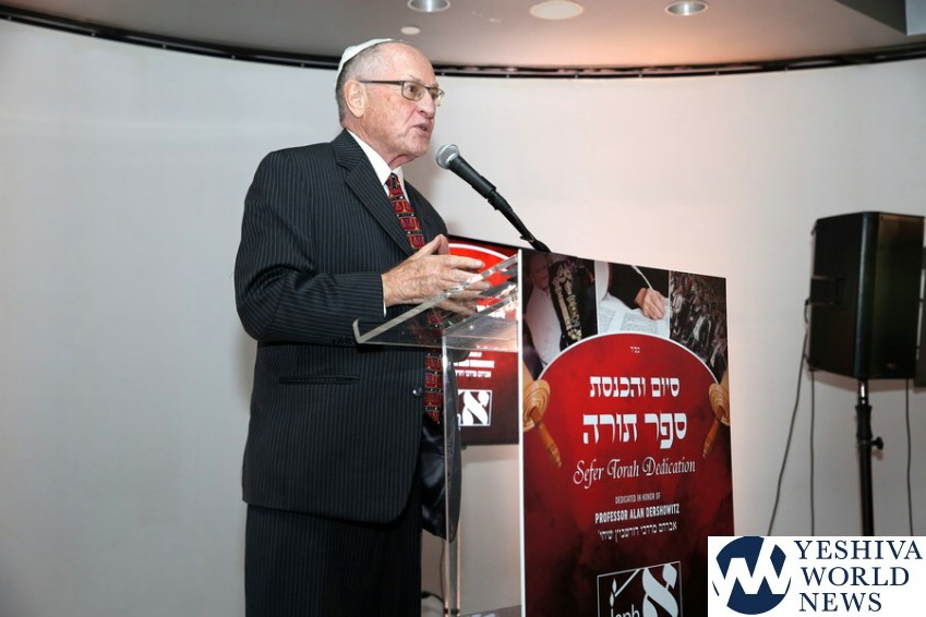 On Thursday, Yud Sivan, hundreds of men, women, and children filled the streets of Crown Heights to welcome a new Torah home. Each step that they took to accompany the Sefer Torah was also a show of support for Professor Alan Dershowitz, a man who is dedicated to the pursuit of justice.