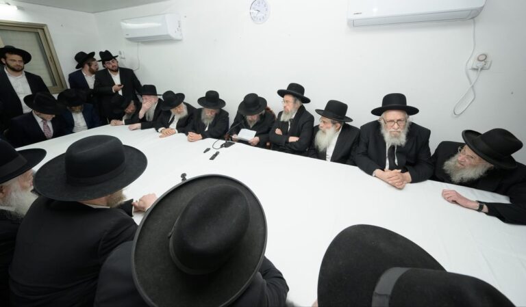 Rabbanim, Roshei Yeshivos, and the Degel Hatorah MKs on Tuesday evening gathered for an emergency meeting regarding the status of bnei yeshivos in the wake of the Attorney-General’s and Supreme